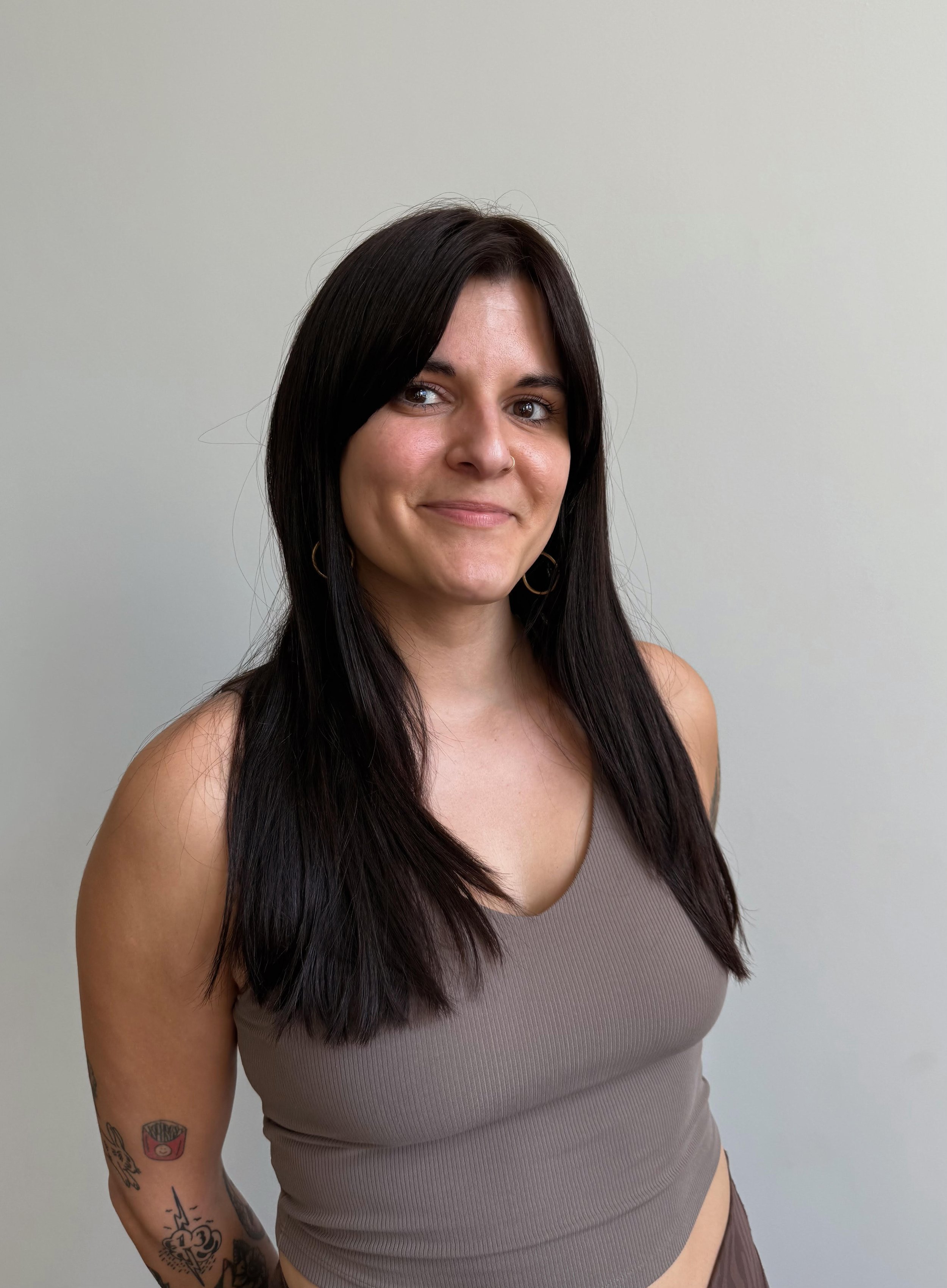 Bri has been practicing yoga since 2008 and completed her 200-hour training with Hola Yoga in 2023. Her classes invite students to turn inward and explore what it means to move gently and rest deeply. She believes supported stillness and nervous-system-aware movement help us meet ourselves, and the world, with more kindness. In a culture that rewards constant doing, Bri offers space to slow down and simply be. Outside of yoga, she’s running her vintage interiors business, House of Yore, tinkering with a project, or curled up on the couch with her husband, their three cats, and a good book.